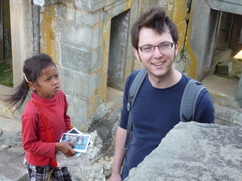 On the way to visit a local village tribe in the hills, we stopped to look at a coffee farm. Sun told us that coffee was selling for 45,000 Dong last year but now it is about 25000 Dong. She said that the drop in price caused a lot of people to commit suicide as they lost a lot of money this year. When we got to the village we met Rot, who works at the hostel where we are staying. We stopped at his parents house who made us tofu and noodle soup. Pez did very well to try lots of it. I thought it was delicious and ate 2 bowls! Then Sun provided us with heaps of local fruit. We tried miniature apples, water apple, dragon fruit, and a load of others that I don’t know how to pronounce or spell! All things I have never heard of and nothing whatsoever like fruit in the UK. Some was savoury, some was like powder on the inside. After lunch we walked further into the village and sat with a family who make handwoven silk. It is so intricate and much more skilled than the loom in the factory. It started to pour with rain and the children playing outside came running in. The grandma picked up one of her bamboo sticks and thwacked them all viciously. We didn’t really understand why!